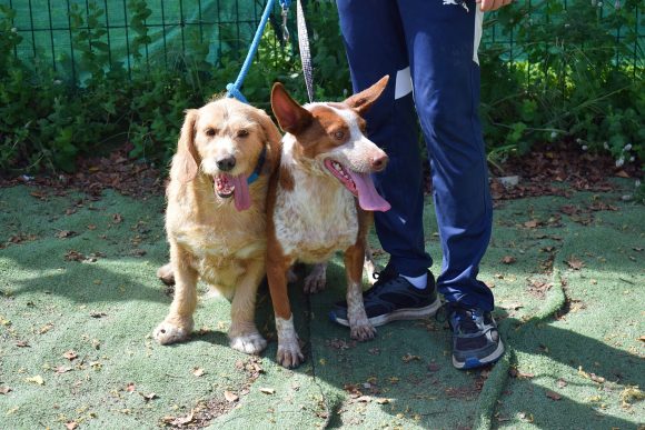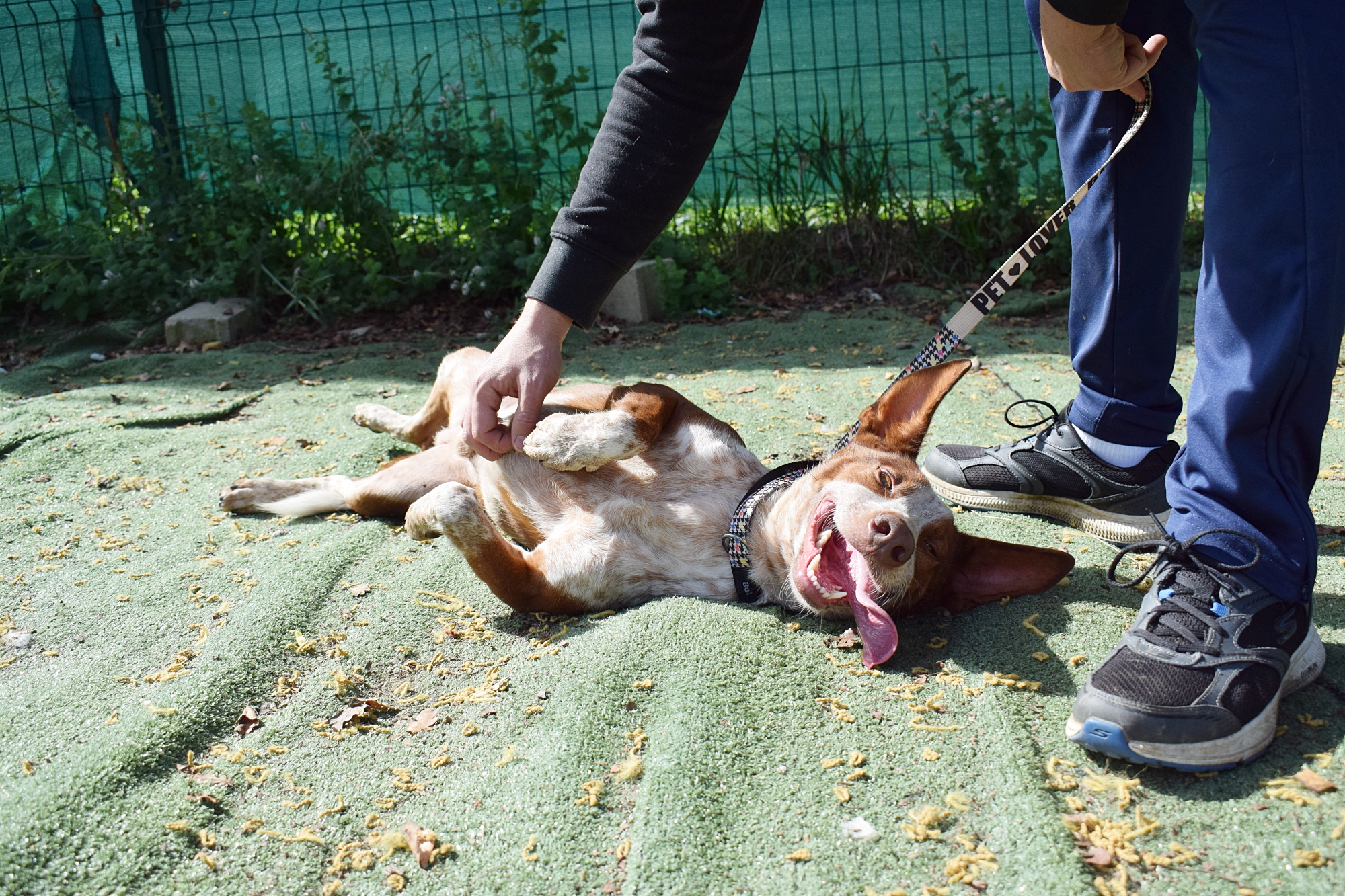 Es un perro muy sociable, alegre y juguetón. Puede vivir en piso si su familia es activa o en un hogar con zona exterior. Es el perro perfecto para llevartelo a todas partes de aventuras, disfruta mucho de los paseos y conocer sitios nuevos. Es muy cariñoso y sociable con las personas, con los demás perros es muy sociable y podría vivir junto a otros perros en el mismo hogar. Está testado con gatos, ese día el gato estaba enfadado y se le lanzó a Fly, a lo que él ni respondió y volvió a pasar junto al gato como si nada. Es de tamaño pequeño – mediano y paticorto, pesa unos 14Kg. Con los niños es bueno y cariñoso. Howie es su mejor amigo, pero sabemos que una adopción conjunta de ambos es un milagro. Pasea bien con la correa.