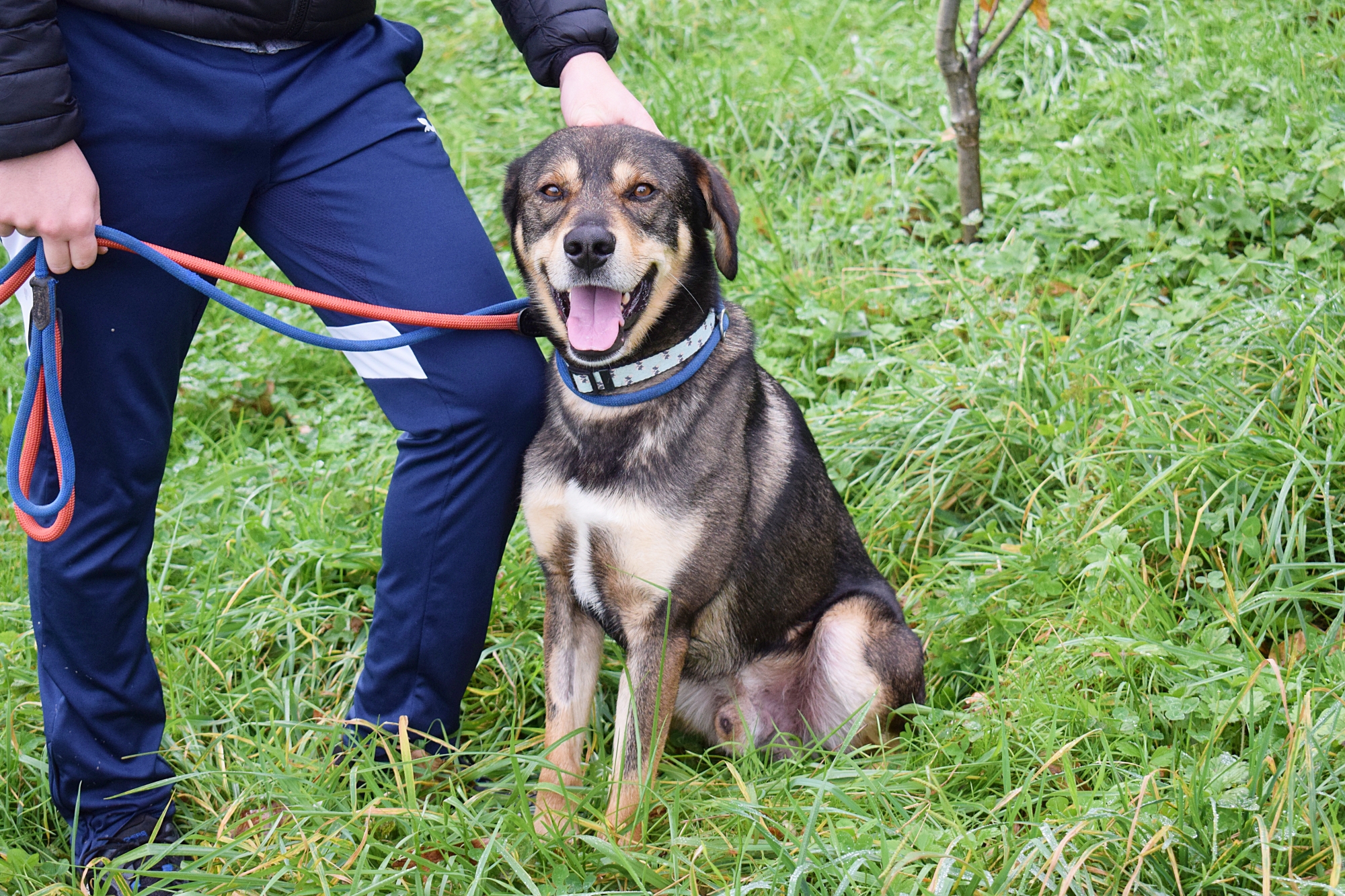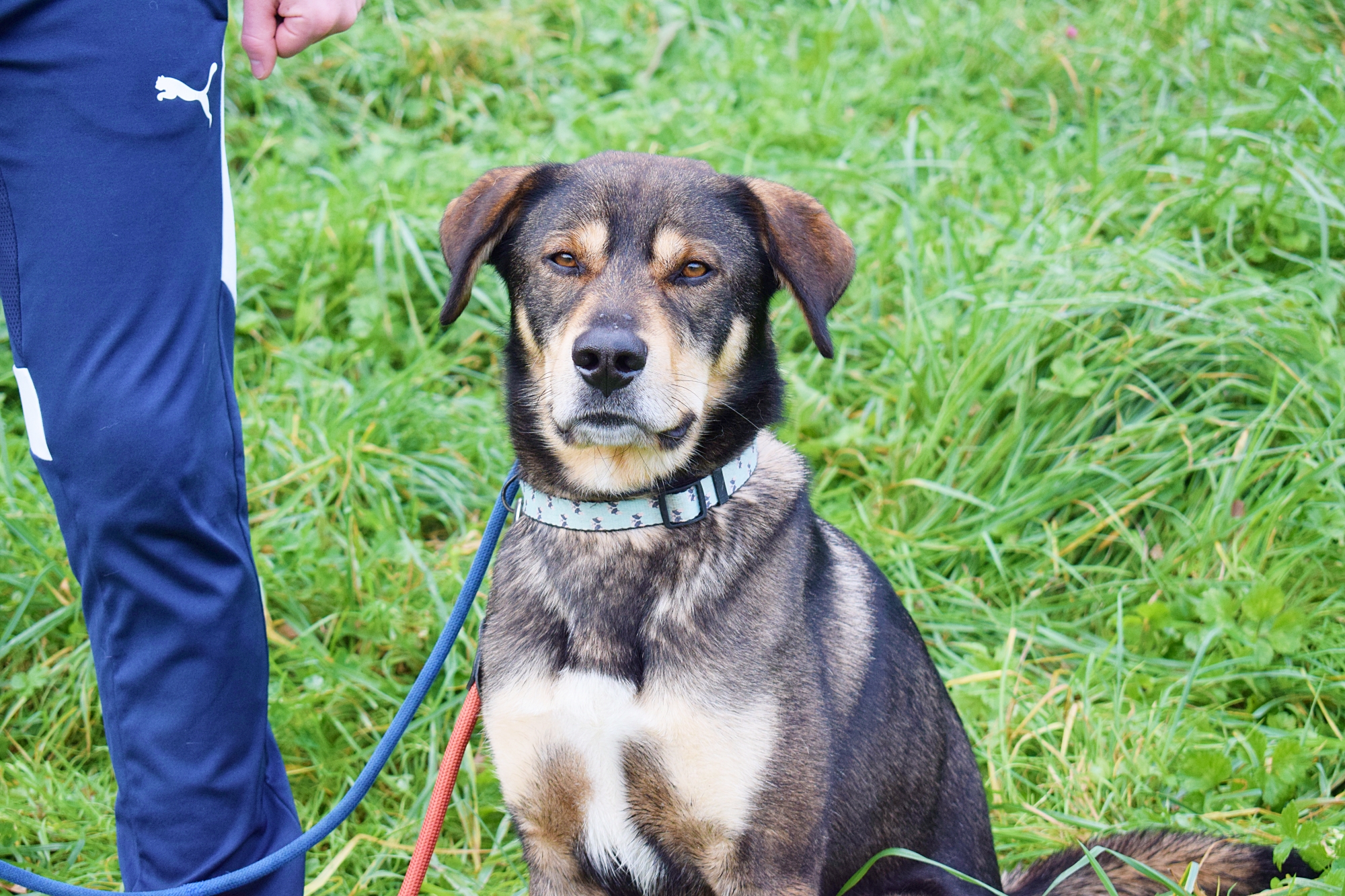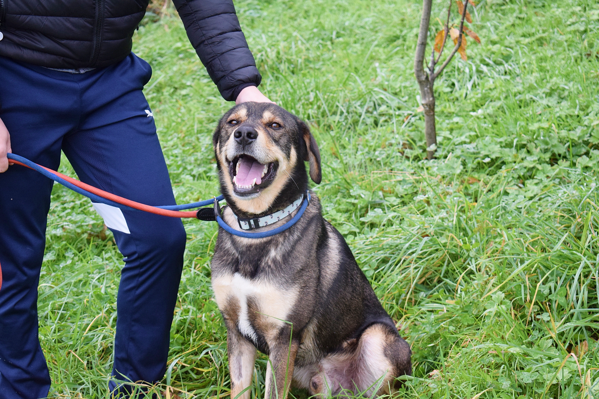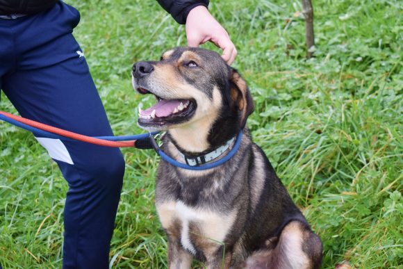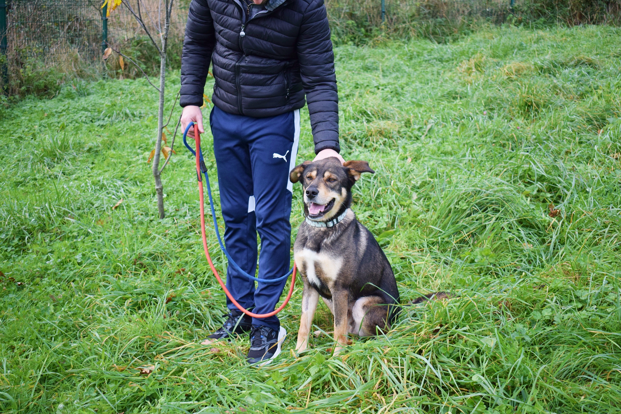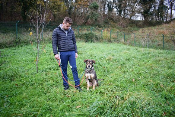 Es un precioso mestizo de Lobero Cántabro, de tamaño mediano, muy jovencito y sin embargo es de energía equilibrada, y con muy buen carácter. Siempre pendiente de ti, obediente y sumiso. Con las personas es una pasada de perro, además es puro amor, cariñoso y noble como el que más. Aquí no presenta miedos, es alegre y confiado con todas las personas, aún sin conocerte de nada se deshace en tus brazos.