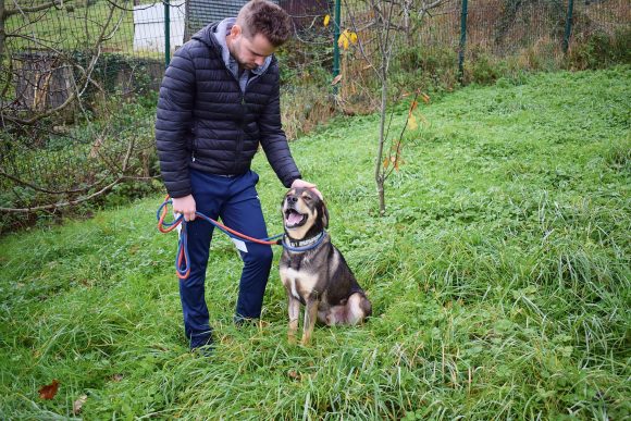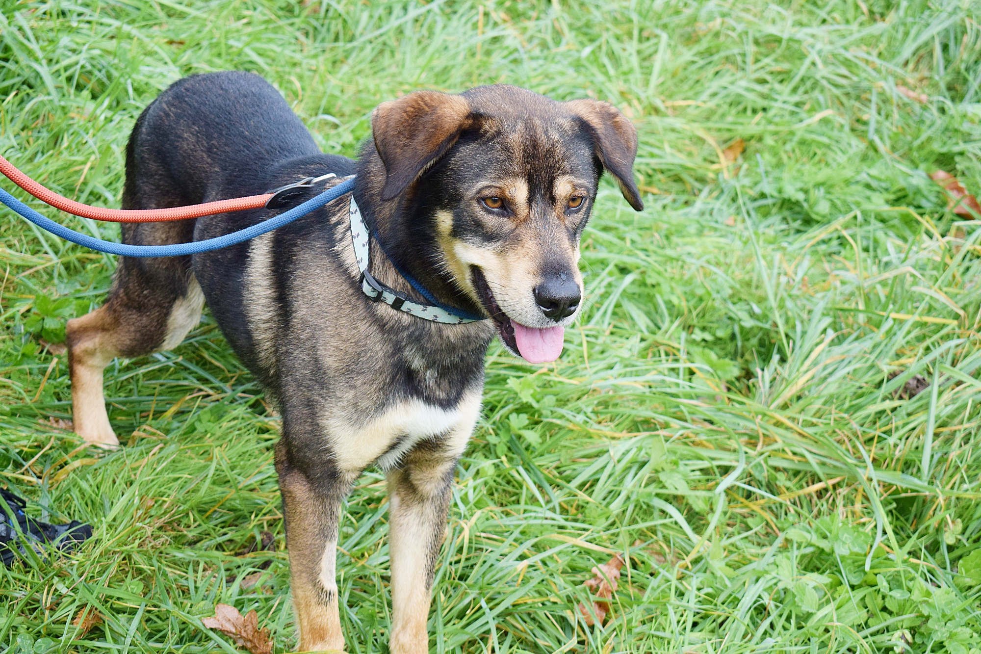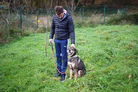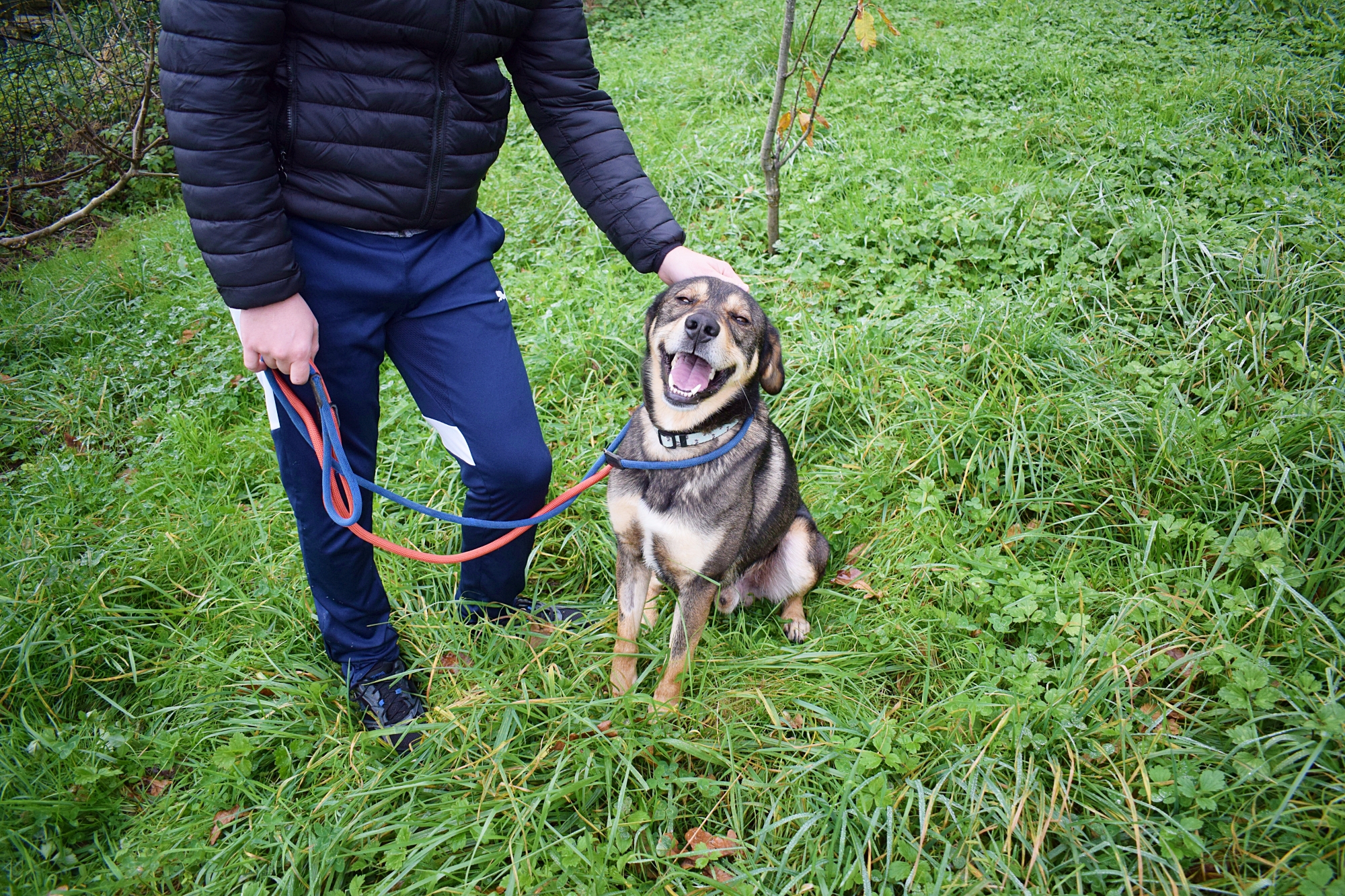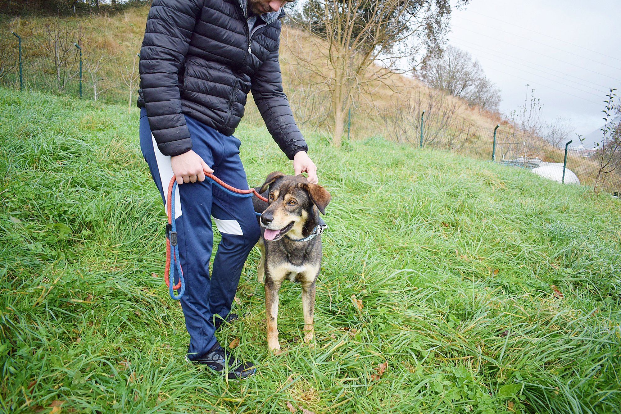 Es un precioso mestizo de Lobero Cántabro, de tamaño mediano, muy jovencito y sin embargo es de energía equilibrada, y con muy buen carácter. Siempre pendiente de ti, obediente y sumiso. Con las personas es una pasada de perro, además es puro amor, cariñoso y noble como el que más. Aquí no presenta miedos, es alegre y confiado con todas las personas, aún sin conocerte de nada se deshace en tus brazos.