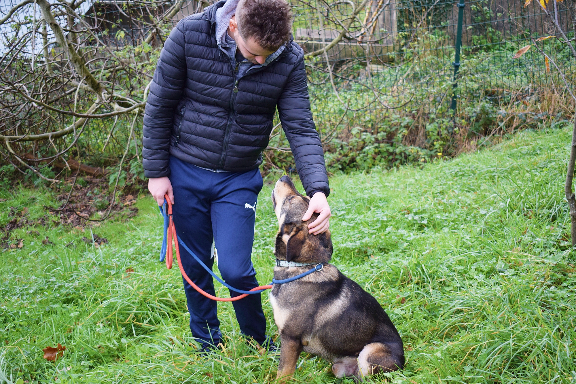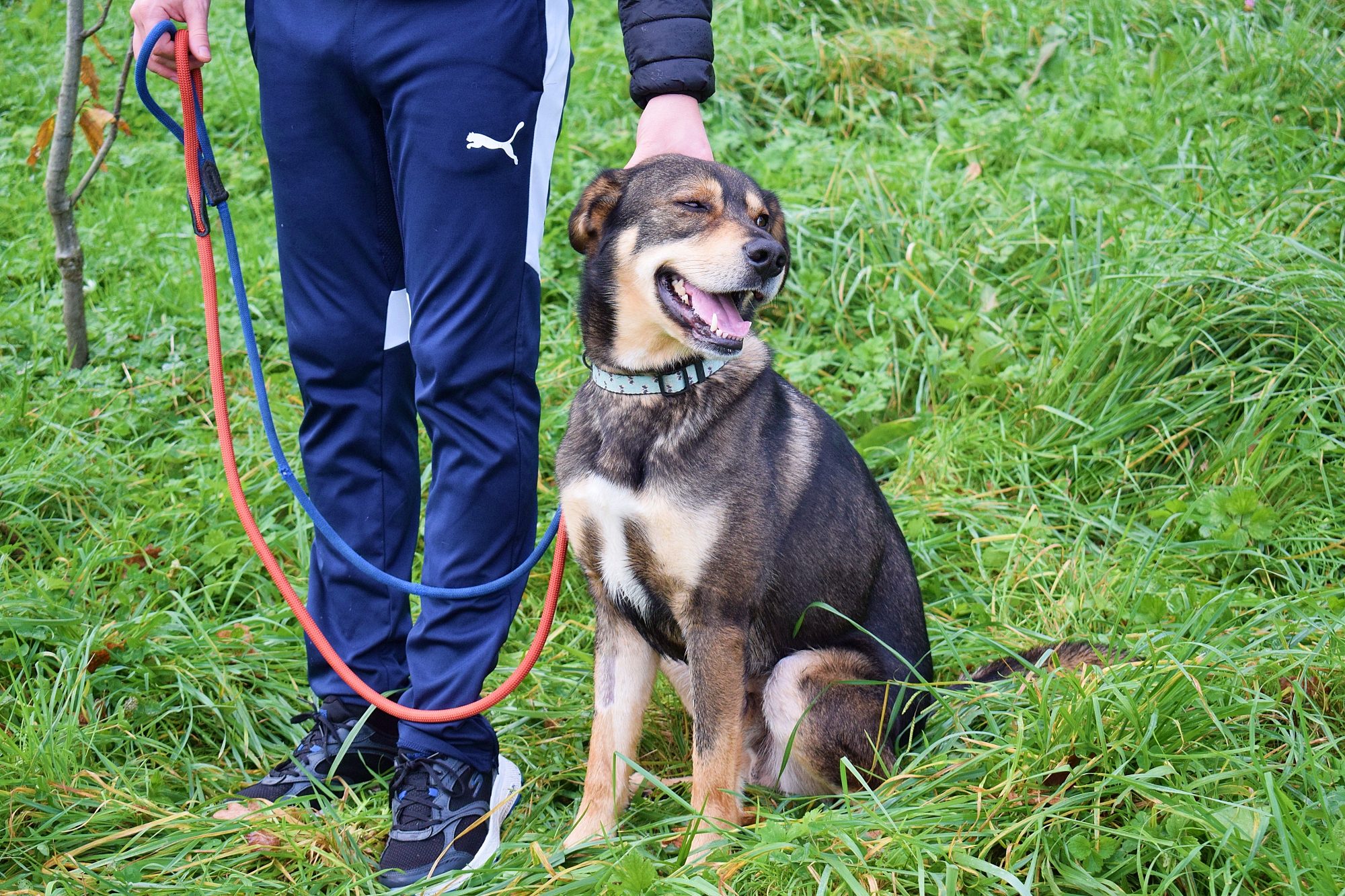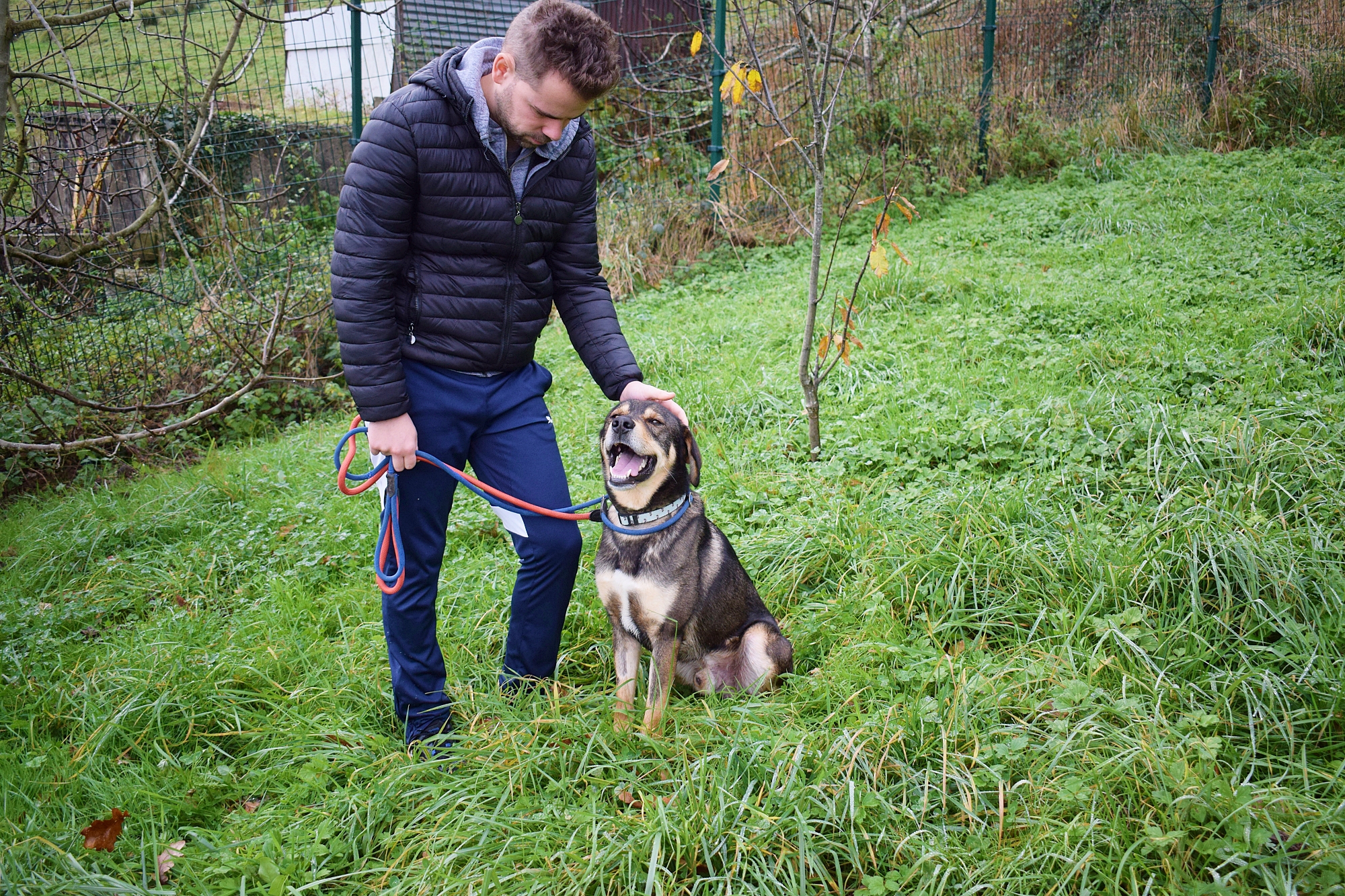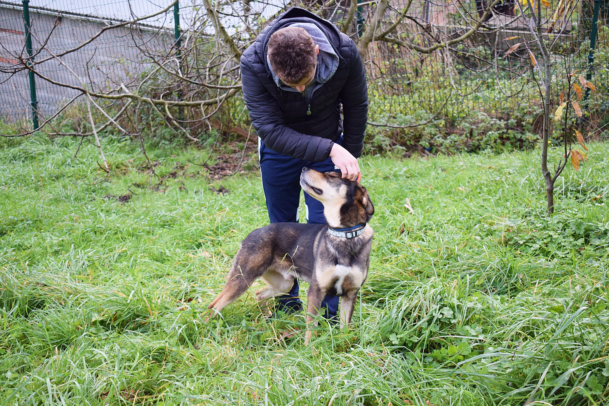 Es un precioso mestizo de Lobero Cántabro, de tamaño mediano, muy jovencito y sin embargo es de energía equilibrada, y con muy buen carácter. Siempre pendiente de ti, obediente y sumiso. Con las personas es una pasada de perro, además es puro amor, cariñoso y noble como el que más. Aquí no presenta miedos, es alegre y confiado con todas las personas, aún sin conocerte de nada se deshace en tus brazos.