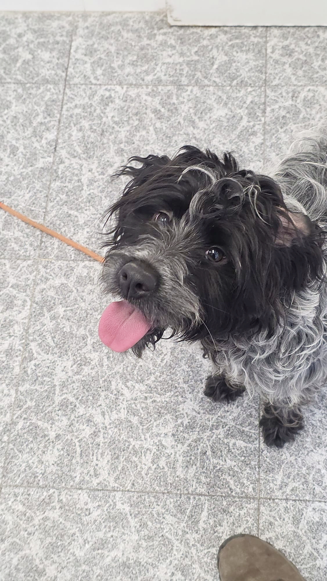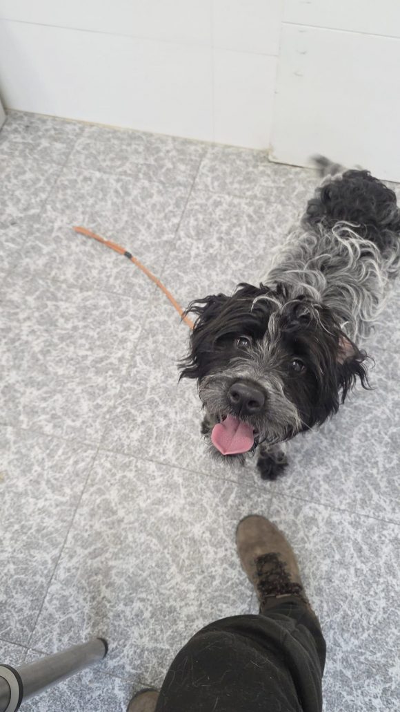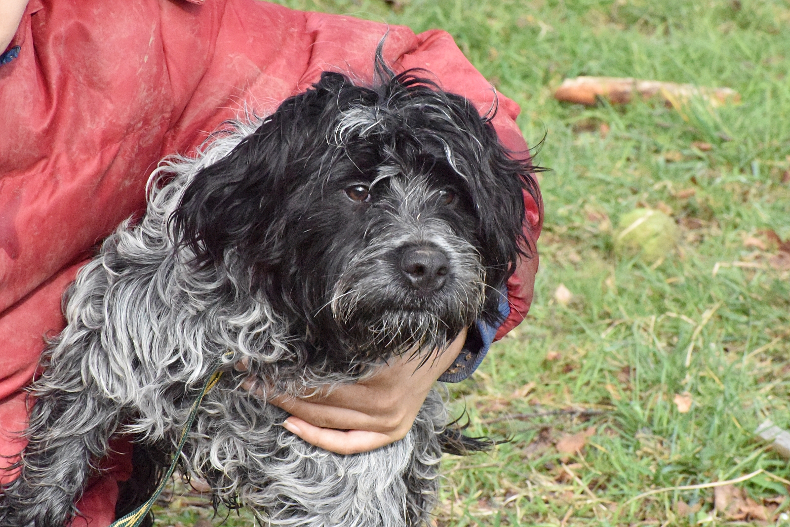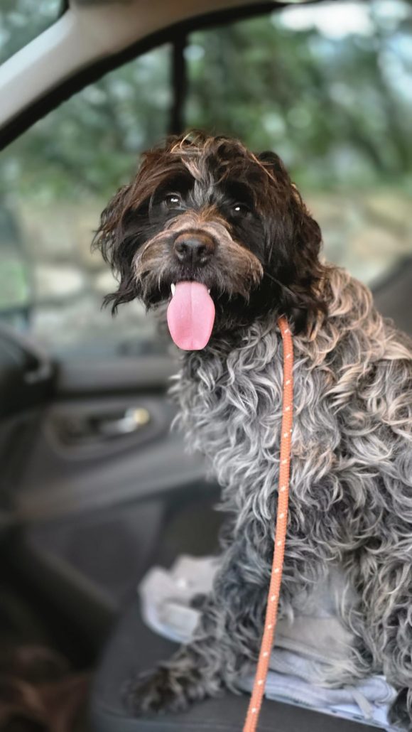 Cachorro cedido por su dueño cazador por no servir para cazar. Es un Grifon Korthals mestizo. Es de tamaño mediano, y solo tiene 9 mesecitos.