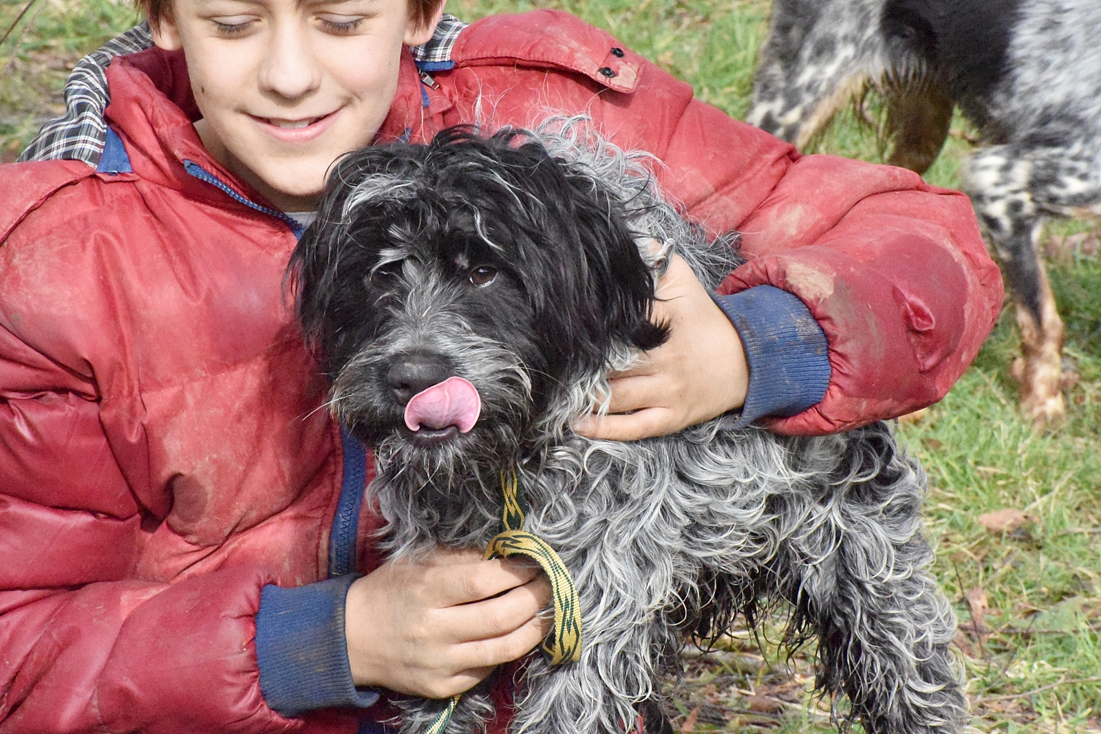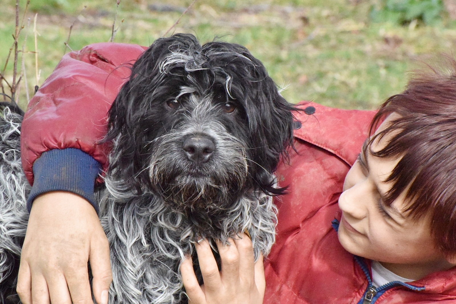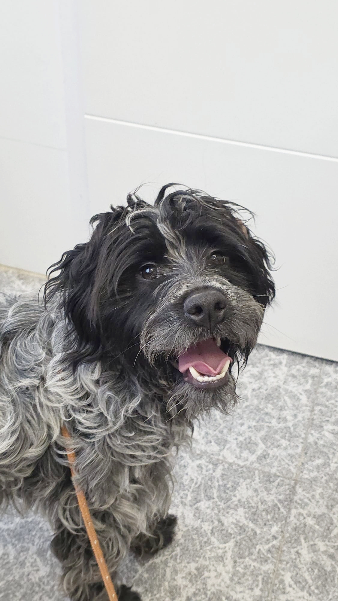 Cachorro cedido por su dueño cazador por no servir para cazar. Es un Grifon Korthals mestizo. Es de tamaño mediano, y solo tiene 9 mesecitos.