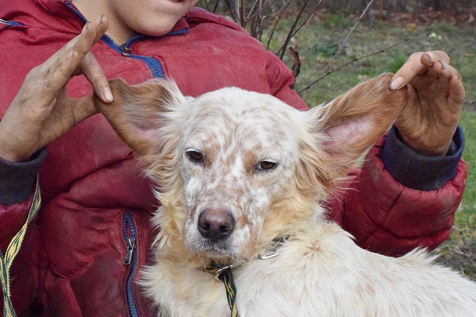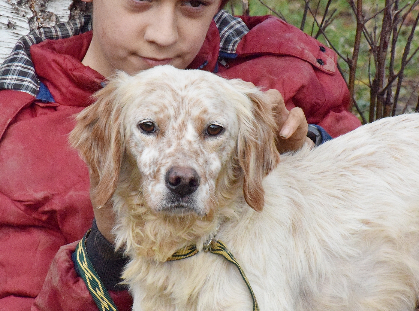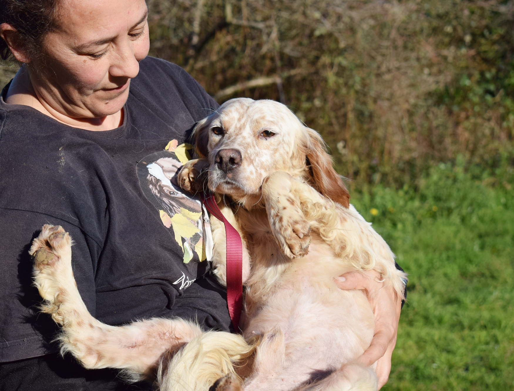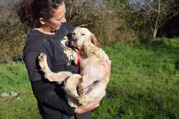 Precioso  Setter Inglés abandonado junto a Mendi, su dueño cazador falleció, y nadie de su familia se quiso hacer cargo de él ni de Mendi.