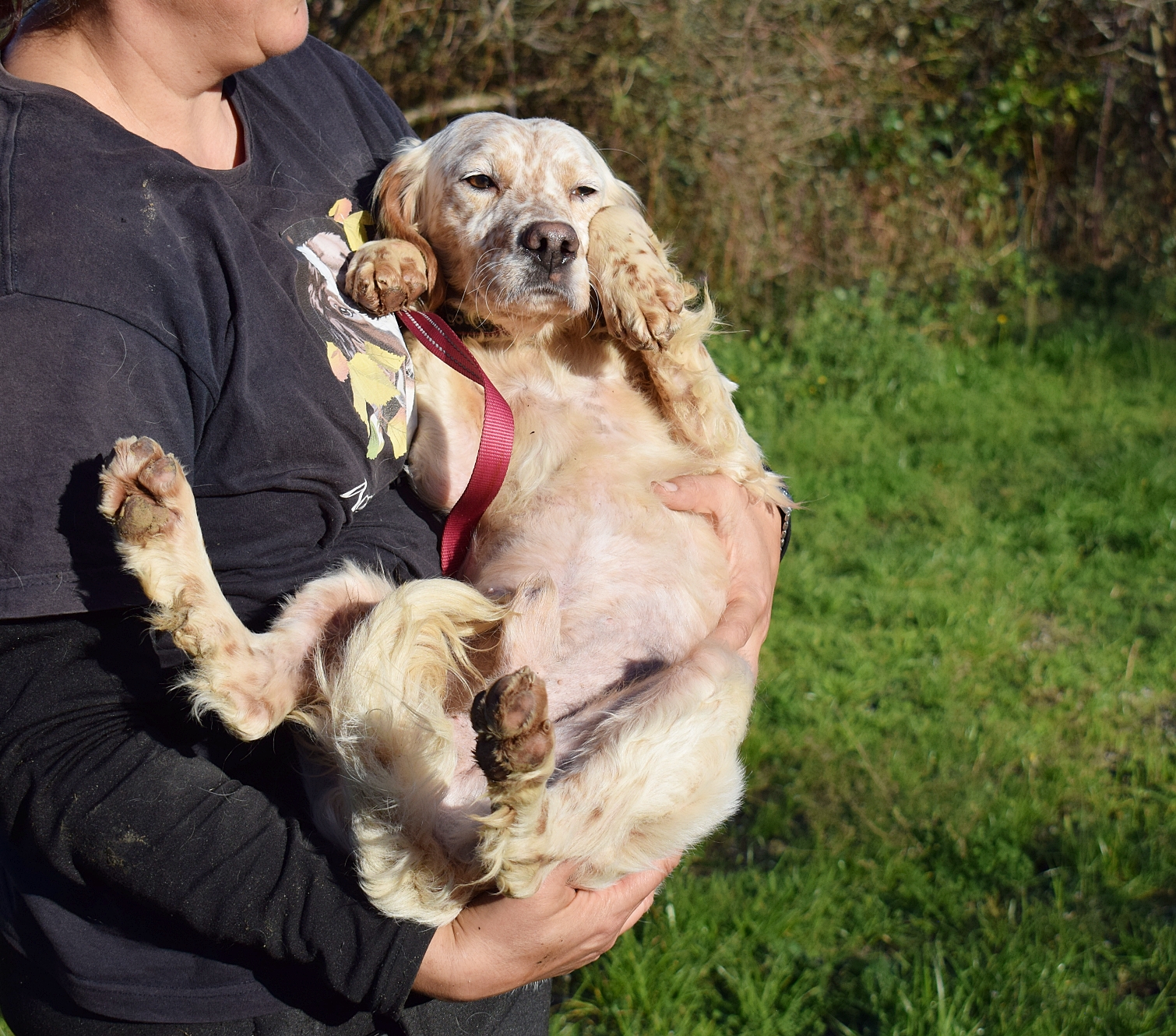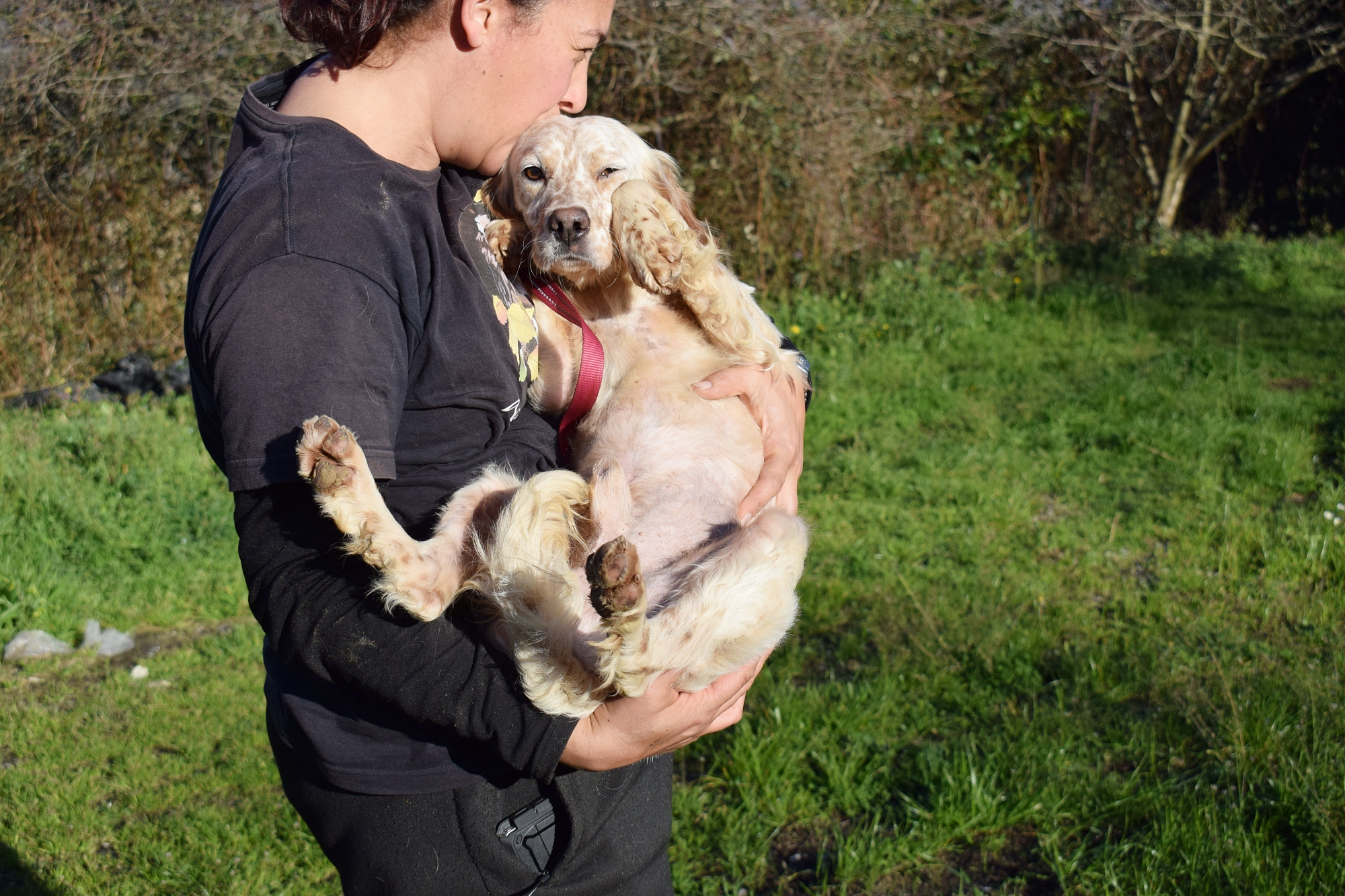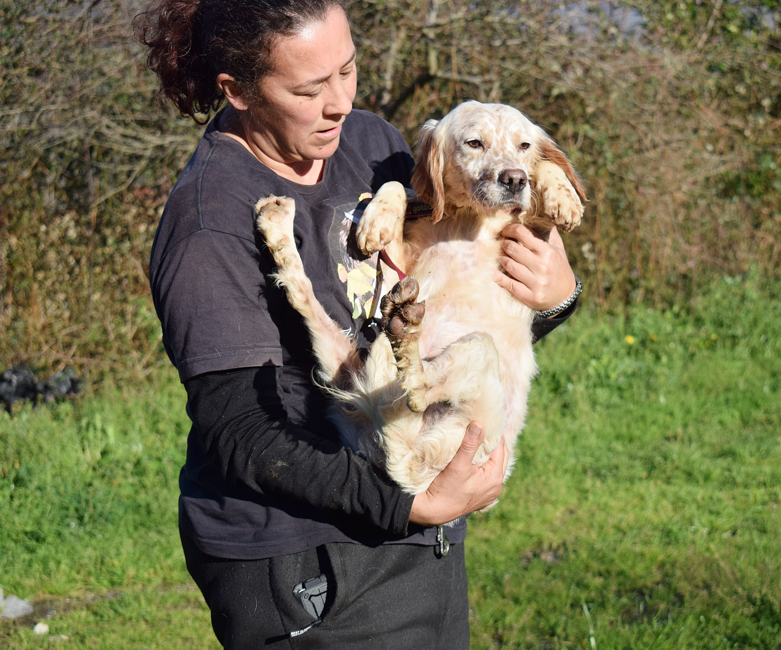 Precioso  Setter Inglés abandonado junto a Mendi, su dueño cazador falleció, y nadie de su familia se quiso hacer cargo de él ni de Mendi.